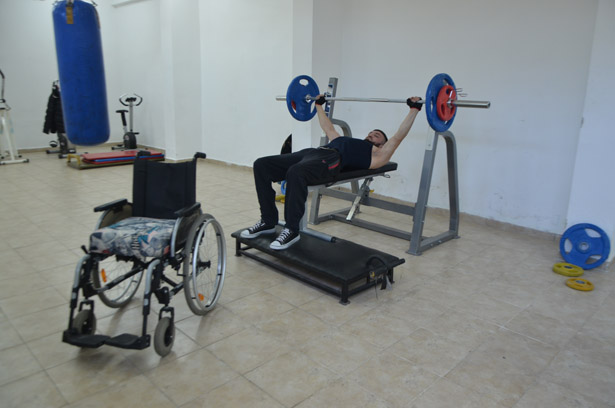 BACAKLARI FELÇLİ GENÇ HALTERDE 100 KİLO KALDIRIYOR