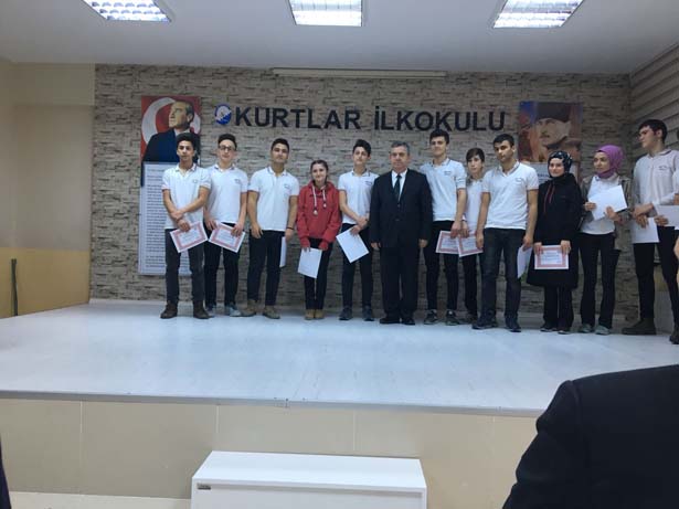 İlçe Milli Eğitim Müdürü Numan Korkmaz'ın Öğrencilere Belgelerini takdimi ile tören sona erdi.