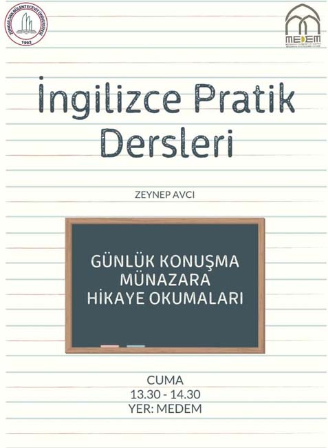 MEDEM’de yeni dönemde yeni dersler de programa alınacaktır. Bu programlardan birincisi günlük konuşma, münazara ve hikâye okumalarına dair pratik İngilizce dersleri olacak. Her hafta Pazartesi günleri 12.00-13.00 arasında Zeynep Avcı ile gerçekleşecek derslere öğrencilerin yoğun katılımı bekleniyor. İngilizcenin yanı sıra Mustafa Sezer ve Tuğba Burma tarafından “Arapça Metin Okumaları” ve Khansaa Aljabbari tarafından pratik Arapça dersleri verilmesi planlanıyor.