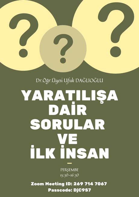 Seminerlerin ikincisi ise her hafta cuma günleri saat 15.30-16.30 arasında hem MEDEM’de yüz yüze hem de zoom üzerinden Dr. Öğr. Üyesi Ufuk Dağlıoğlu tarafından “Yaratılışa Dair Sorular ve İlk İnsan” konusunda verilecek olup öğrencilerden ve zoom üzerinden programa katılanlardan gelen sorular cevap bulacak.
