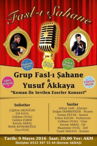 Fasl-ı Şahane ile 'Bahara Merhaba!..' konseri 09 Mayıs 2016 Pazartesi günü saat 20.00'de Atatürk Kültür Merkezi Sinema Salonunda gerçekleştirilecek olan konsere katılımın yüksek olması bekleniyor.