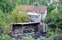 adım kala durabilen kamyondaki hafriyat da evin bahçesine döküldü. Araçtan