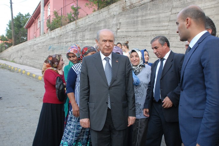Zonguldak'ın Karaman beldesine gelen Bahçeli vatandaşlara seslendi. Türkiye'de gerilimin arttığını iddia eden Bahçeli, "Kamplaşma, ayrışma etnik ve mezhep temelinde yoğunlaşmaktadır. Sosyal hareketlilik bir başlar, bir kargaşa ortaya çıktığı zaman partilerden eser kalmaz. Öyle 'Ben delikanlıyım' diyenleri arasanız dahi bulamazsanız" diye konuştu.
