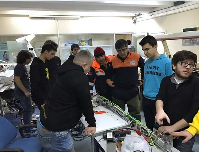Sondaj kuyusundaki köpeği kurtarma operasyonuna yaptıkları robotik kolla katılan liseli öğrenciler, çalışmalarını kameralarla kayıt altına aldı. Öğrencilerin yaklaşık 3 saat süren çalışması sonucu köpek kuyudan çıkartıldı.