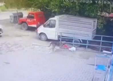 Bu sırada marketin çevresinde dolanan köpek tavuğun bulunduğu yere gelerek poşetin içindeki tavuğu buldu. Ağzıyla tavuğu poşetten çıkartmayı başaran köpek hızla bölgeden uzaklaştı.