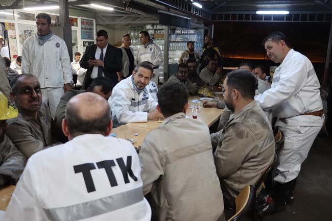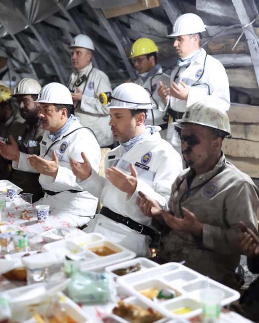 Bakan Bayraktar, Türkiye Taşkömürü Kurumu (TTK) Karadon Müessese Müdürlüğü Gelik İşletmesi'nde maden ocağına inerek eksi 360 metrede madencilerle iftar yaptı.