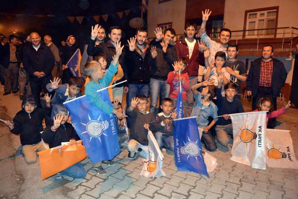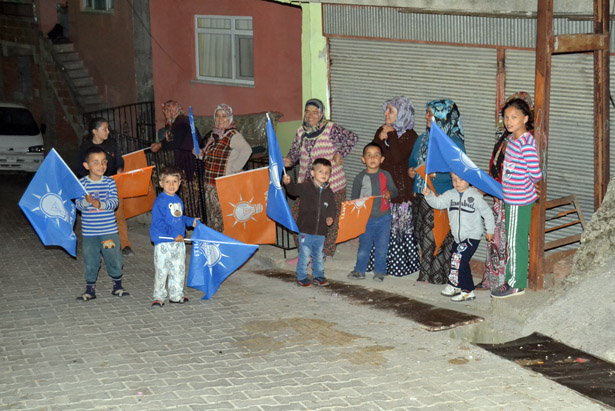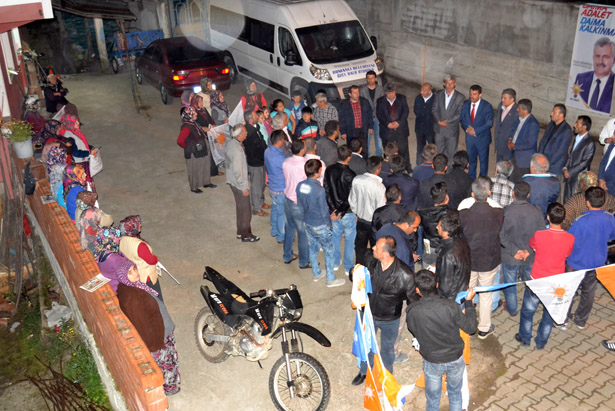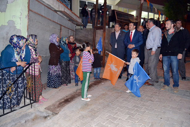 AK Parti heyetini, ellerinde bayraklarla coşkulu bir şekilde karşılayan vatandaşlar, 7 Haziran seçimlerinde destek vereceklerinin mesajını verdiler.