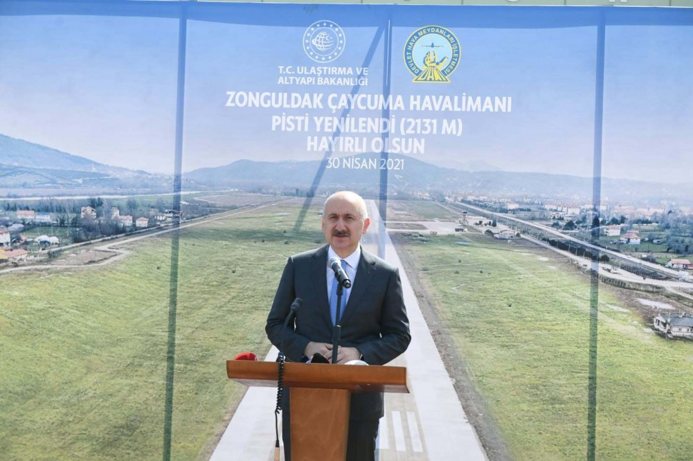 Bakan Adil Karaismailoğlu yapımı devam eden havalimanlarının da tamamlanmasıyla aktif havalimanları sayısının 60’a çıkacağını ifade ederek, “Çukurova, Tokat, Rize-Artvin, havalimanlarımız tamamlandığında aktif havalimanı sayımız 60’a çıkacaktır. Ayrıca Kayseri ve Malatya havalimanlarının yeni terminal binalarının temellerini attık, çalışmalara başladık. Gaziantep havalimanımızın yeni terminal binasını de Haziran da hizmete alacağız. Bugün iniş yaptığımız Zonguldak Çaycuma Havalimanı, 1948’de askeri amaçlı olarak inşa edilmişti. 1992’de de DHMİ işletmesine devredildi. 2019 yılında Devlet Hava Meydanları İşletmesi tarafından ILS sistemi kurulan havalimanımız daha güvenli hale getirildi. Bölgesel nitelikli Havalimanımız, Zonguldak, Bartın ve Karabük illerine hizmet vermekte, bu hali ile Batı Karadeniz Bölgemizin yurt dışına açılan kapısı olmaktadır. Havalimanımızın ihtiyaçları konusunda bölge milletvekillerimiz, valilerimiz ve belediye başkanlarımızla birlikte hummalı bir çalışmaya girdik. Bölgemizdeki ekonomik büyüme ve halkımızın artan talebi neticesinde yenileme çalışmalarına gerek duyulmuştur. Bu amaçla, havalimanımızda geçtiğimiz Nisan ayında başlatılan pist büyütme çalışmaları tamamlanmıştır. Çalışmalarımız kapsamında, havalimanımızın pistinin uzunluğu bin 881 metreden, 2 bin 131 metreye uzatılmış, 30 metrelik pist genişliği de 45 metreye çıkarılmıştır. Pistin büyütülmesi sayesinde, büyük tip uçaklar havalimanımızı kullanabilecektir. Havalimanımızın pist ve yolcu kapasitesinin genişletilmesi, bölgeden özellikle Avrupa ülkelerine olan yoğun uçuşlar için kolaylık sağlayacaktır” diye konuştu.