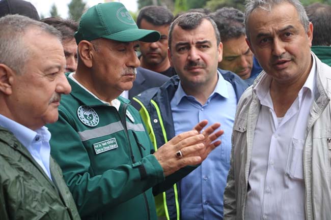 Tarım ve Orman Bakanı Prof. Dr. Vahit Kirişçi selin vurduğu Saltukova beldesinde incelemelerde bulundu.