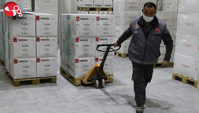 Türkiye’nin yerli ve milli Covid-19 aşısı TURKOVAC’ın yeni serileri ülke genelindeki şehir hastanelerine dağıtılmaya başlandı. Ankara’da yer alan Halk Sağlığı Genel Müdürlüğü Aşı ve İlaç Deposu’na getirilen aşılar buradan özel araçlar ile 81 ile dağıtılıyor.