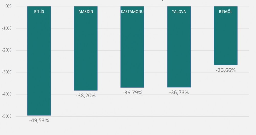 Tabloya göre en çok artış olan il Bilecik, en çok azalış olan il ise Bitlis.