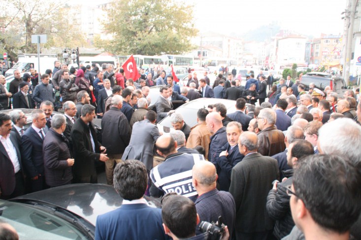 "Ereğli Cenabı Allah'ın lütfettiği en güzel coğrafyada oturuyor. Zonguldak da öyle. Cenabı Hak ne verdiyse en güzelini vermiş. Ama insan eliyle öyle kötülükler yapılmış ki. Yazık. Zonguldak'ın içinde gezerken daracık, beş metrelik dehliz gibi sokaklar gördük. Böylesi bir şey olamaz. Doğrusu üzüldük. Allah'ın verdiği o güzel coğrafya içinde ne yazık ki gözümüze çarpan bir sürü çirkinlikler var. Burada sizin duanızla, belediye başkanımızın, teşkilatımızın çalışmalarıyla inşallah Karadeniz Ereğlisi bir inci olmaya devam eder. Yer güzel, ortam güzel, ama insan eliyle yapılacak o kadar çok iş var ki. Başkanımız gayret ettikçe, uğraştıkça biz de yanında olacağız.