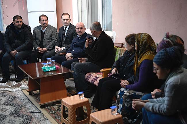 İçişleri Bakanı Süleyman Soylu, maden kazasında hayatını kaybeden işçilerin ailelerini ziyaret etti.