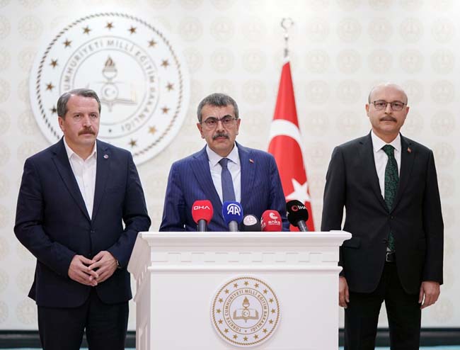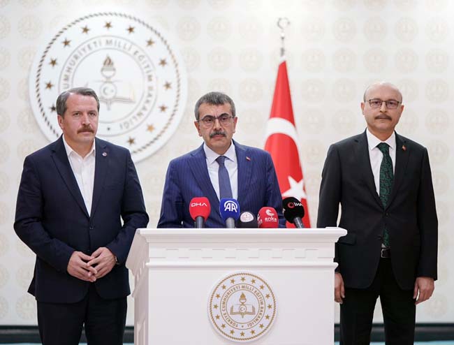 mücadele etmeye kararlıyız. Bu konuda bizzat Cumhurbaşkanımız sürecin sonuna kadar takipçisi olmamız konusunda bizleri talimatlandırdı. Bakanlık olarak bizler de bu tür olaylarla ilgili yargı süreçlerine bizzat müdahil olup, takip etmek üzere alabileceğimiz bütün tedbirleri alıp, her türlü adım atmaya kararlıyız. Bu süreçte bize destek olan emniyet mensuplarımıza ve yargı mensuplarımıza huzurlarınızda teşekkür etmek istiyorum. Bir eğitimci, bir baba ve bir vatandaş olarak öğretmenlerimizin ve öğrencilerimizin güven içinde eğitim görebilmeleri, öğretebilmeleri için gereken her şeyi yapma konusunda kararlıyız. Öğretmenlerimize yönelecek hiçbir baskı ve şiddeti asla kabul etmeyeceğimizi, öğretmenlerimizi asla kimseye ezdirmeyeceğimizi buradan bir kez daha tüm Türkiye ile paylaşmak istiyoruz" diye konuştu.