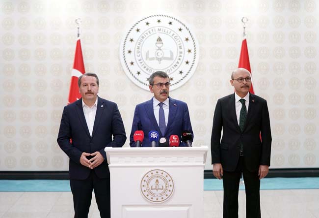 Bakan Tekin’e basın açıklaması sırasında Türk Eğitim-Sen ve Eğitim Bir-Sen genel başkanları da eşlik ederken, Eğitim İş Sendikası ve Eğitim-Sen genel başkanları ise basın açıklamasına katılmadı.