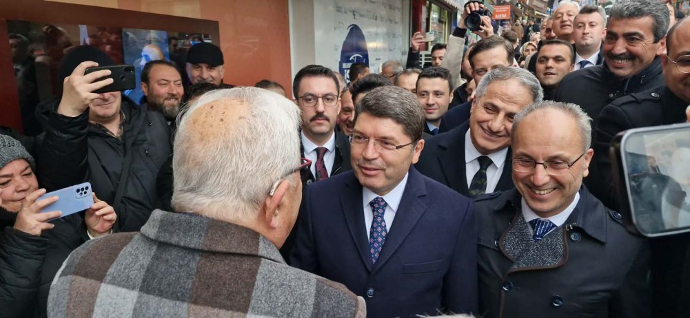 Adalet Bakanı Yılmaz Tunç, seçim gezisi sırasında Cumhuriyet Halk Partisi Belediye Başkan adayı Halil Posbıyıkla diyaloğu gülüşmelere neden oldu.