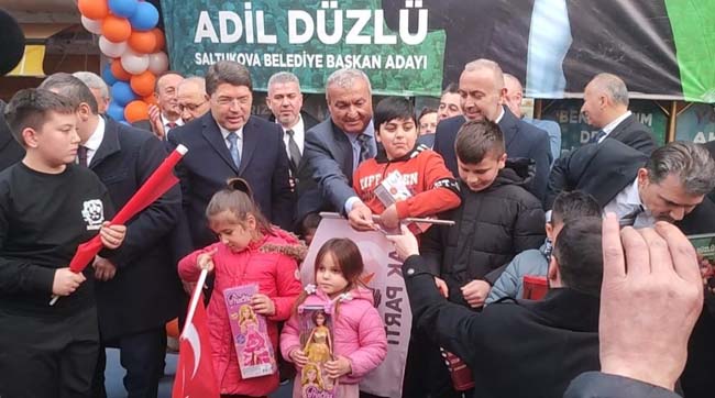 Bakan Tunç, AK Parti Saltukova Belediye Başkan Adayı Adil Düzlü’nün adına da gönderme yaparak, “Adalet Bakanı’nı onun için çağırdı. Adil, adaletli olan. Değil mi” diye esprisini yaptı