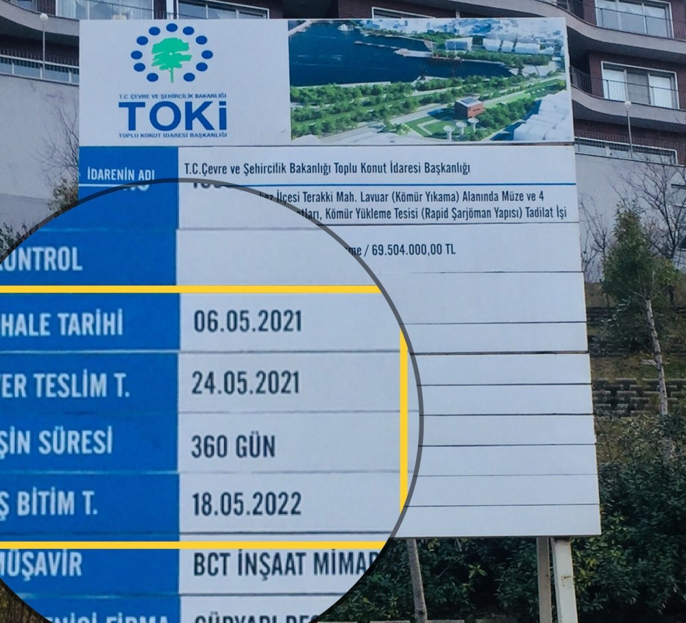 “Zonguldak merkezdeki Türkiye Taşkömürü Kurumuna ait eski kömür yıkama tesisi ve çevresinde TOKİ tarafında yürütülen "Lavuar Alanı Projesinin” ihalesi 06.05.2021 tarihinde yapılmış ve 18.05.2022 tarihinde işin tamamlanacağı ilan edilmişti.