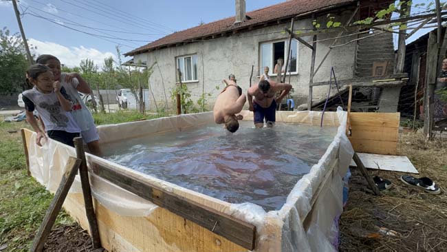 Yaptıkları havuzu ise en çok çocuklar çok sevdi.
