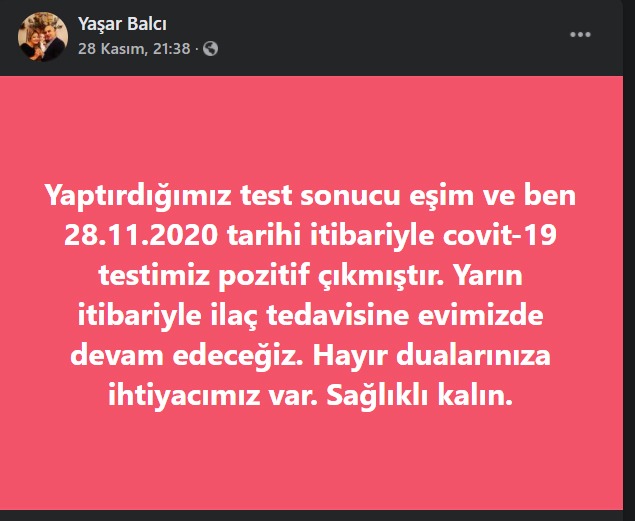 Ereğli’ de 28 Kasım Cumartesi günü sosyal medya hesabından kendisi eşi Merih ve oğlu Canberk Balcı ile ilgili Koronavirüs testlerinin sonuçlarının Pozitif olduğunu açıklayan Cumhuriyet Halk Partisi Belediye Meclis üyesi Yaşar Balcı evinde karantinaya alınmış, kronik rahatsızlığından nedeniyle kısa süre sonra rahatsızlığının artması üzerine hastaneye kaldırılmıştı. Oğlu Canberk Balcı’da evde rahatsızlanmış ve Özel Echomar Hastanesine kaldırılmıştı.