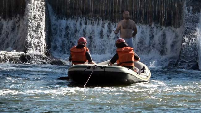 Bartın'da ırmakta balık avlayan bir kişi, suların yükselmesi sonucu 2 saat boyunca çağlayanda mahsur kaldı.