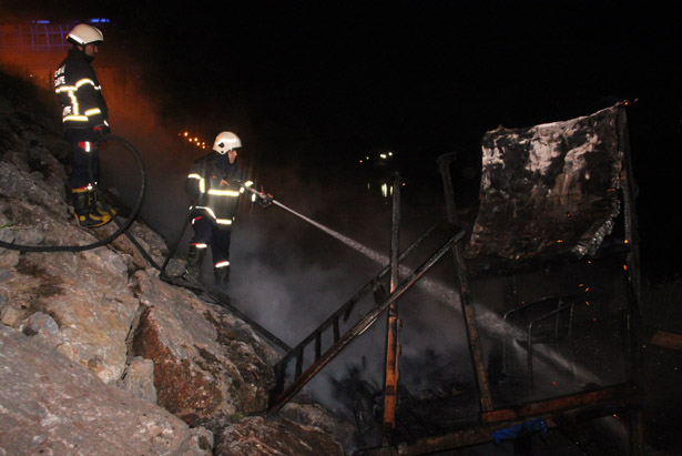 kenarında balıkçıların malzemelerini koydukları barakanın yandığını görünce