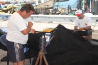 eden balıkçılar, ağların tamiri ile birlikte balıkçı teknelerinin de bakım