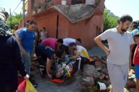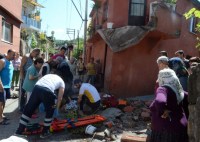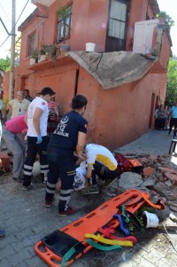 kısa süre sonra da yaşlı kadının bulunduğu balkon bir anda çöktü. Beton blok