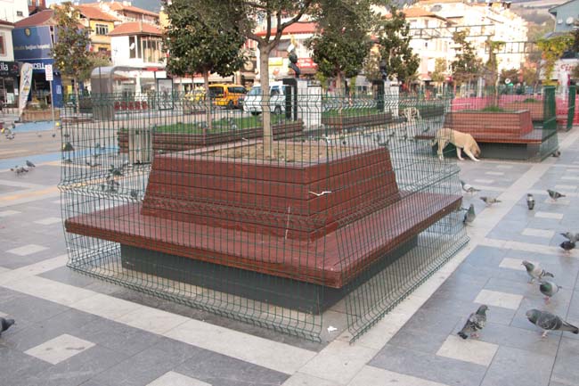 Devrek Belediyesi koronavirüse karşı alınan ek tedbirler kapsamında, şehrin alan, park ve bahçelerindeki oturak ve bankları kaldırdı. Ağaçlı ve sabit olan banklara da vatandaşların oturmamaları için tel örgü çekti.