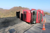 Zonguldak'ın Ereğli ilçesinde toz kömür yüklü TIR ana yolda devrildi. Yol trafiğe kapanırken, kaza da yaralanan TIR sürücüsü sağlık ekiplerinin ilk müdahalesinin ardından Ereğli devlet hastanesine kaldırıldı.