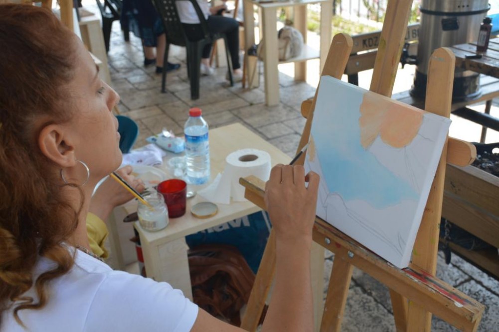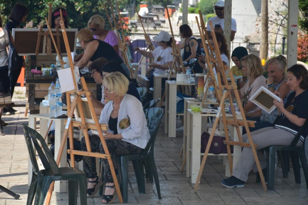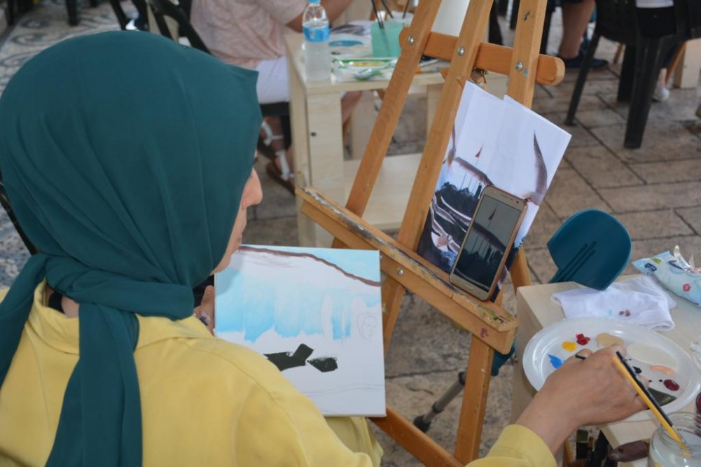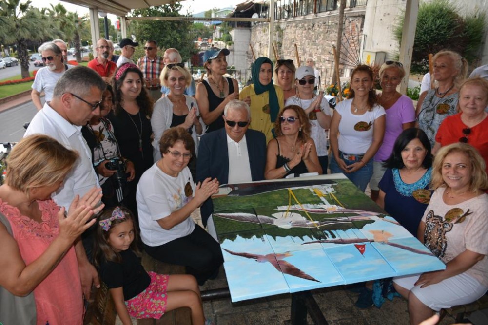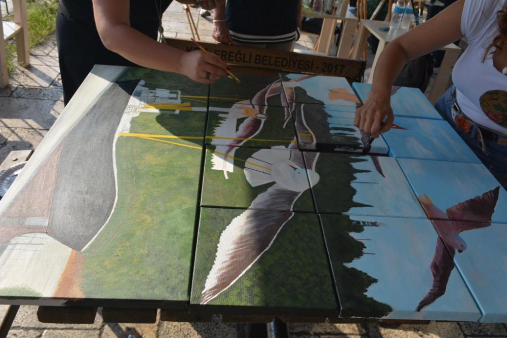Mehtap Akdemir ve Kursiyerleri, Kdz. Ereğli’deki üç tepeden biri olan Göztepe’yi tuvale yansıttılar. Bir puzzle gibi 13 parça halinde yaptıkları tablo parçalarını gün sonunda birleştirerek çok çarpıcı bir eser ortaya çıkardılar. Birleştirilen tablo Karadeniz Ereğli Belediye Başkanı Halil Posbıyık’a hediye edildi.