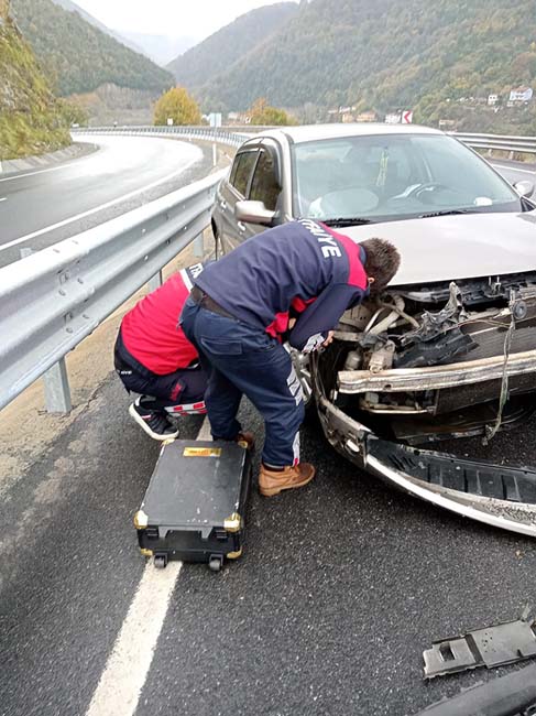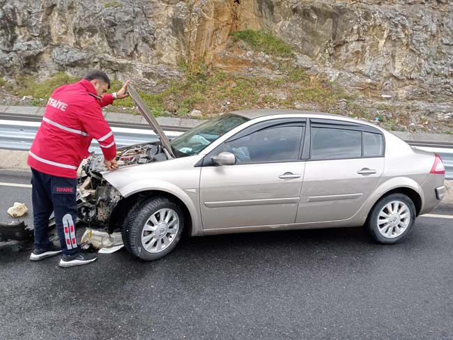 Edinilen bilgiye göre kaza öğlen saatlerinde Ilıksu mevkiinde meydana geldi. İddiaya göre yağış nedeniyle sürücüsünün kontrolünden çıkan otomobil bariyerlere çarptı. Şans eseri kazada yaralanan olmazken araçta maddi hasar meydana geldi. Öte yandan Kozlu Belediyesi itfaiye ekipleri ise aracın yangın riskine karşı araçta önlem aldı. Polisin kazayla ilgili soruşturması sürerken, araç çekici yardımıyla yoldan çekildi.