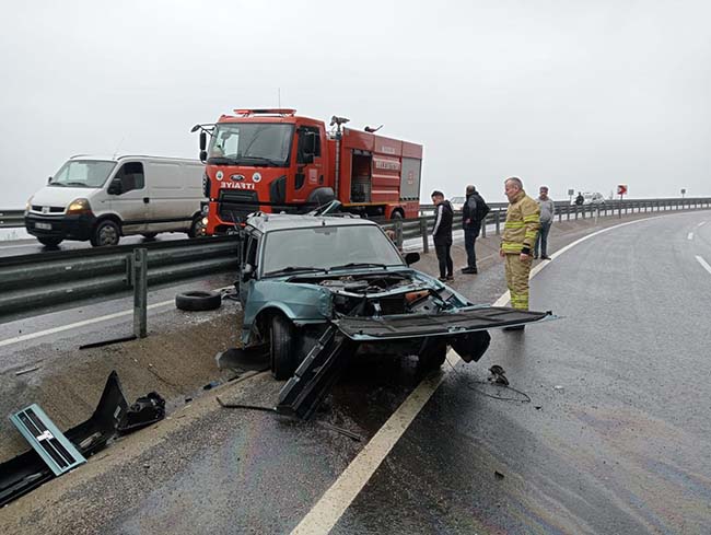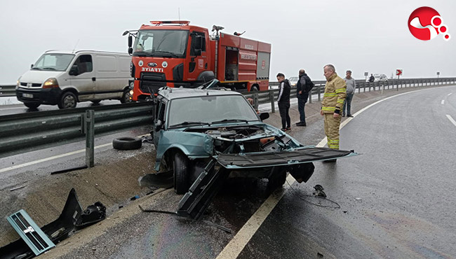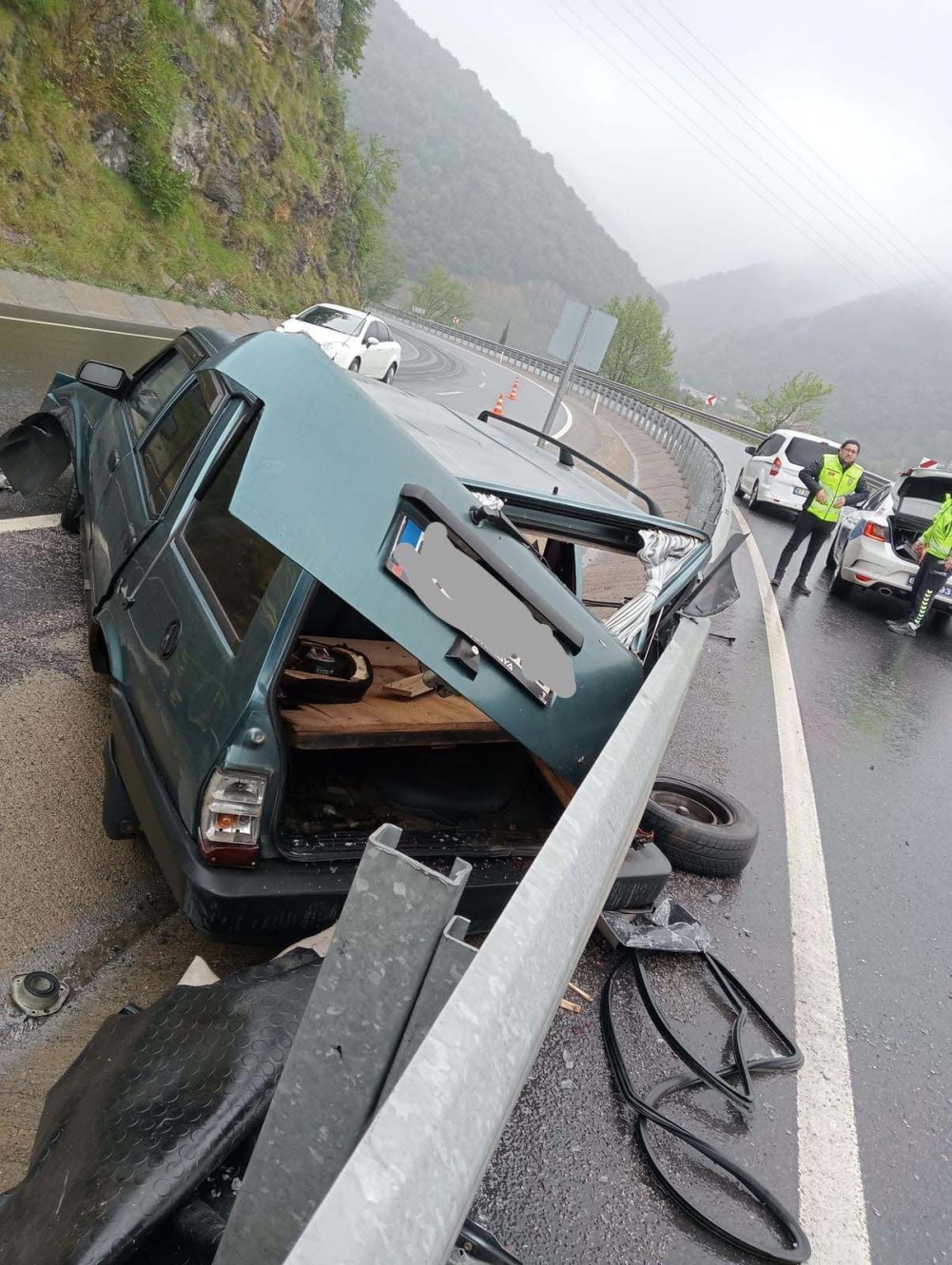 Kaza Kdz.Ereğli karayolu Ilıksu mevkiinde meydana geldi. Edinilen bilgiye göre E.Ç. hakimiyetindeki 67 SA 525 plakalı aracın lastiğinin patlaması sonucu yolun ortasında bulunan demir bariyerlere çarparak durabildi. Kazayı gören diğer sürücüler 112 Acil Servisi arayarak olay yerine yardım istedi. Hurdaya dönen araçta bulunan E.Ç. ve K.Ç., itfaiye ekiplerinin yardımıyla sağlık ekiplerine teslim edildi. Yaralılar ambulansla BEÜ Tıp Fakültesi Hastanesine kaldırıldı.