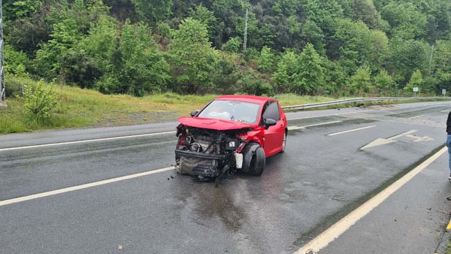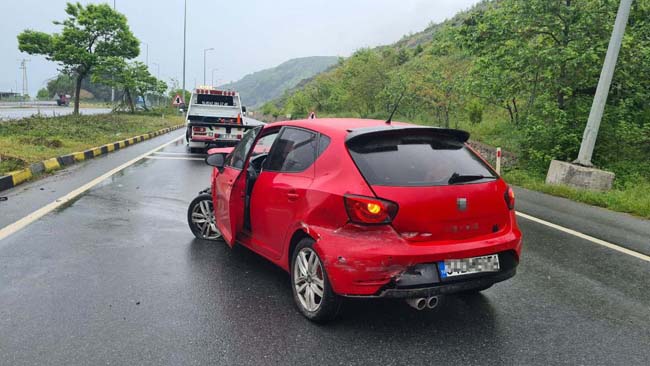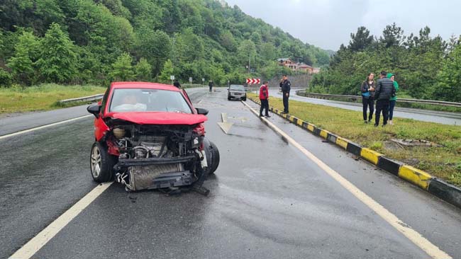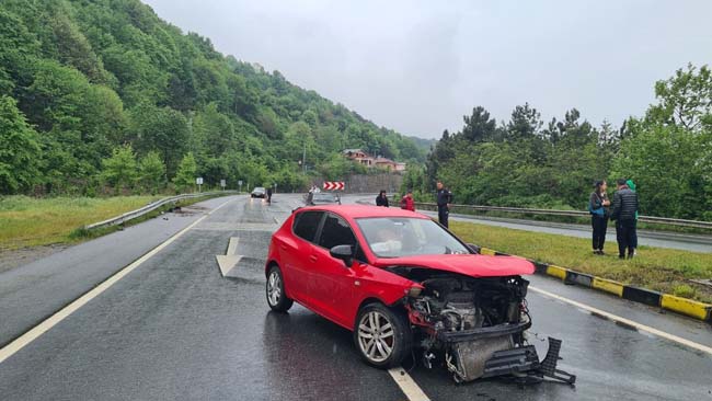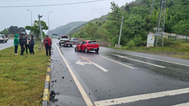 Edinilen bilgilere göre, Akçakoca istikametinden Alaplı istikametinden giden Bahar A. yönetimindeki aracın virajı aldığı sırada lastiğinin patlaması sonucu yolun ortasında bulunan bariyerlere çarparak durabildi. Kazada şans eseri yaralanan olmazken, otomobilde maddi hasar meydana geldi. Kaza nedeniyle bir süre tek şeritten sağlanan trafik, çekici yardımıyla otomobilin yoldan kaldırılmasıyla normale döndü.