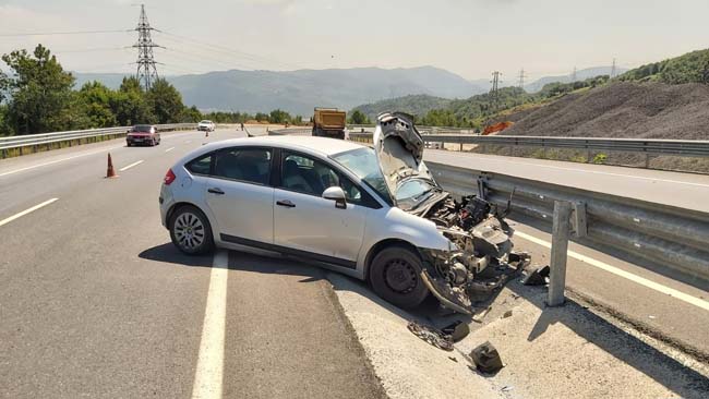 Kaza 14.10 sularında Ereğli-Zonguldak karayolu üzerinde meydana geldi. İddiaya göre otomobil sürücüsü Mehmet Ç. (36) su almak için arkaya döndüğü sırada direksiyon hakimiyetini kaybetmesi sonucu bariyerlere çarparak durabildi. Kazada sürücüsü Mehmet Ç. ile birlikte eşi Fatma (35) ve çocukları 8 yaşında K. Ç. ile 4 yaşındaki kızı B. Ç. yaralandı. Yaralılar için haber verilen ve kısa sürede olay yerine gelen 112 ekipleri yaralılara yaptığı ilk müdahalenin ardından devlet hastanesine kaldırdı. Yaralıların tedavi altına alındığı ve sağlık durumlarının iyi olduğu öğrenildi. Kaza ile ilgili soruşturma başlatıldı.