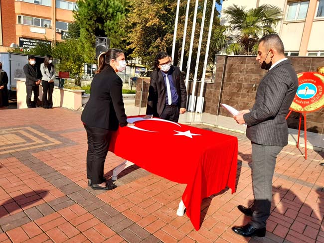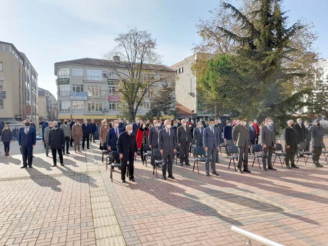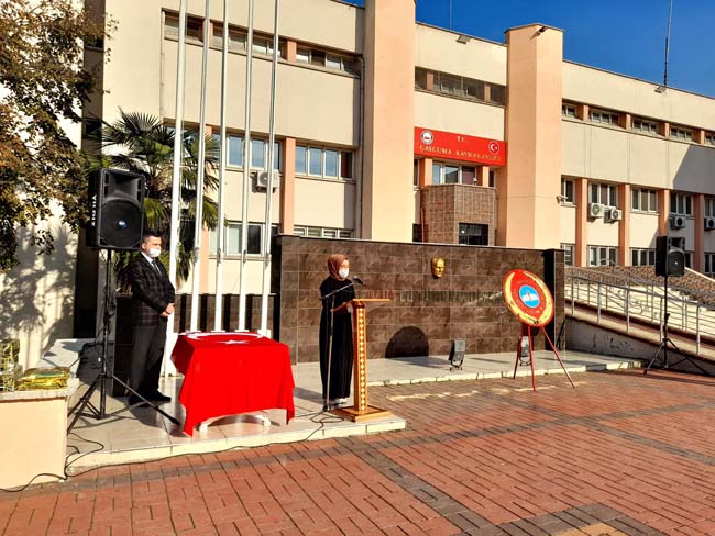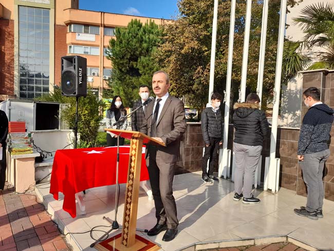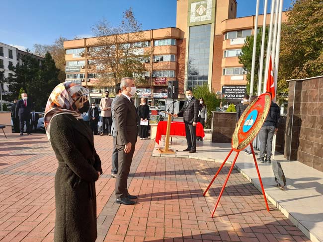 Atatürk Anıtı'na İlçe Milli Eğitim Müdürü İsmail Baş'ın çelenk sunmasının ardından saygı duruşu ve İstiklal Marşı okundu. Günün anlam ve önemine ilişkin konuşmayı İlçe Milli Eğitim Müdürü İsmail Baş yaptı. Baş,