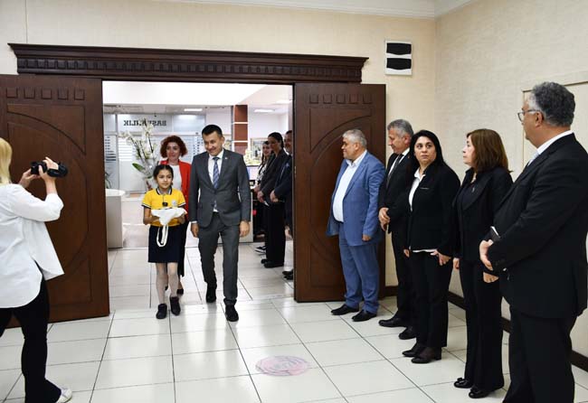 Okul Müdürü Ali Demirbay ve sınıf öğretmeni Esin Çetin ile birlikte başkan yardımcıları tarafından makamda karşılanan Başak Yiğit, Başkan Posbıyık’ı seçim başarısı nedeniyle tebrik etti, çiçek takdiminde bulundu. Koltuğa oturan Yiğit, tüm çocukların Ulusal Egemenlik ve Çocuk Bayramı’nı kutladı.