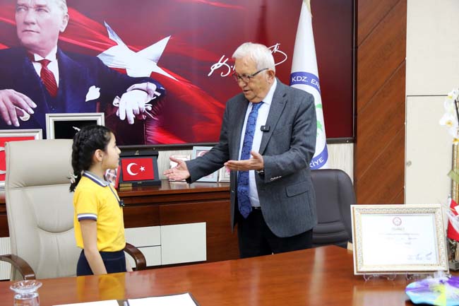 Kdz. Ereğli Belediye Başkanı Halil Posbıyık, 23 Nisan Ulusal Egemenlik ve Çocuk Bayramı nedeniyle koltuğunu Bahçelievler İlkokulu 4. sınıf öğrencisi Başak Yiğit’e devretti.