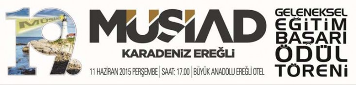 MÜSİAD Kdz. Ereğli Şubesi tarafından, Karadeniz Ereğli ve Alaplı ilçeleri Lise ve Dengi Okullarından ilk üç dereceyle mezun olan öğrenciler ödüllendirilmesi amacıyla düzenlenen ve bu sene 19.'su yapılacak olan Başarı Ödül Töreni, 11 Haziran Perşembe günü 17.00-19.30 saatleri arasında Büyük Anadolu Ereğli Otel'de gerçekleştirilecek.