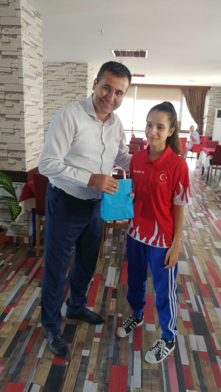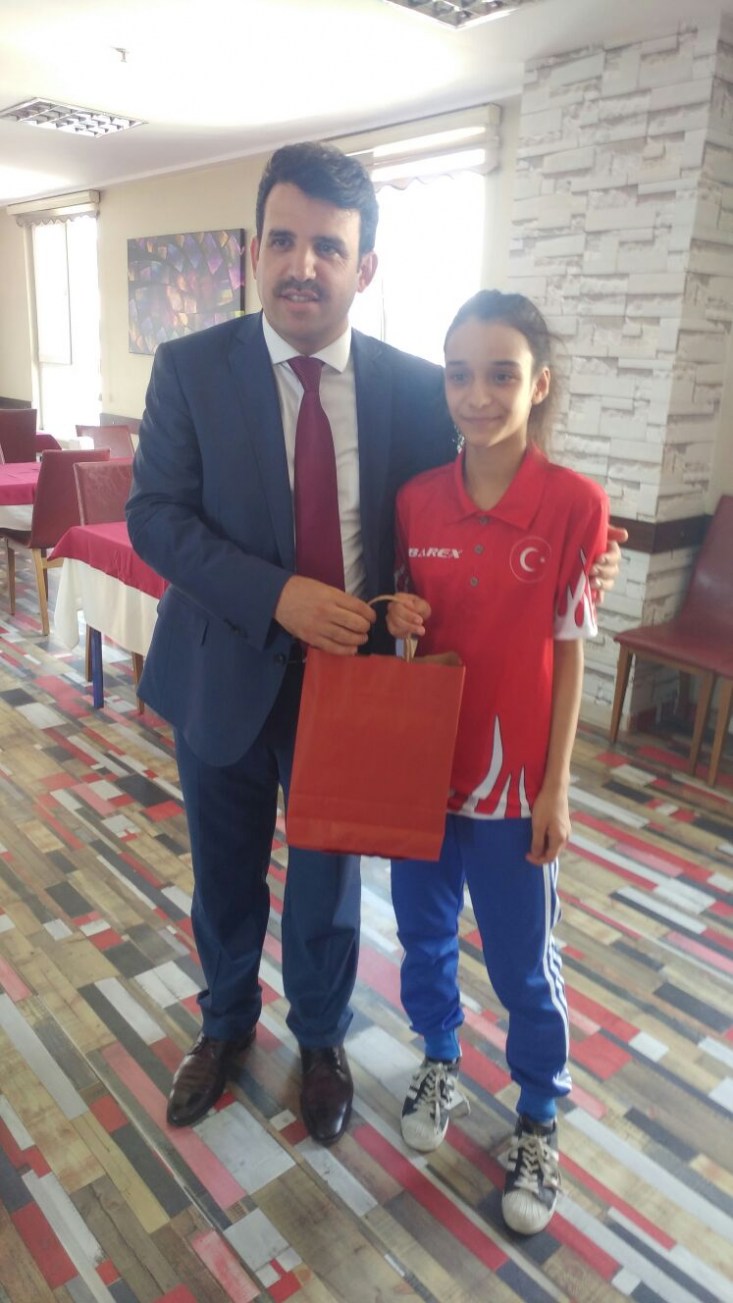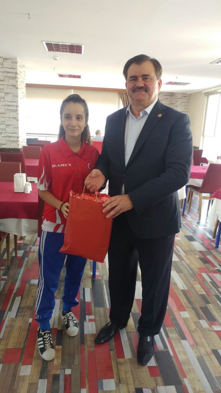 "Ben öncelikle taekwondo müsabakalarında önemli dereceler elde ederek, Ereğli'mizi ve Zonguldak'ımızı başarıyla temsil ettikleri için Şevval ve Esra kızlarımıza teşekkür ediyorum. Şevval kızımız, elde ettiği derece ile uluslar arası müsabakalarda Türkiye'yi temsil etme hakkı kazandı ve Milli Takıma çağırıldı. Bu başarı, oldukça önemli bir başarı. Kızlarımızı yetiştiren anne-babalarına ve antrenörlerine de çok teşekkür ediyoruz. Gerek bizler, gerekse İl ve İlçe Gençlik Hizmetleri ve Spor Müdürlerimiz, İlçe Teşkilatımız ile Belediyemiz, spor organizasyonlarında başarılı olan kardeşlerimizin yanındayız, elimizden ne geliyorsa yapmaya hazırız. Yeter ki bizim ay yıldızlı bayrağımızı dalgalandırsınlar, bölgemizi ve ülkemizi gururla temsil etsinler. Böyle başarılı sporcularımızın artmasını istiyoruz. Bu konuda da İl ve İlçe Gençlik Hizmetleri ve Spor Müdürlerimize güveniyoruz. Çiçeği burnunda bir Spor Bakanımız var, kendisiyle görüştük, İlimizin ihtiyaçlarını aktardık, olumlu bir yaklaşım gördük, inşallah bu görüşmemizin semerelerini de alacağız. Ben tekrar Şevval ve Esra kızlarımız ile ailesini ve hocalarını tebrik ediyor, başarılarının devamını diliyorum."