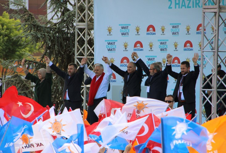 Başbakan Binali Yıldırım seçim çalışmaları kapsamında Düzce'de miting yaptı. Anıtpark Meydanı'nda düzenlenen mitinge Bilim Sanayi ve Teknoloji Bakanı Faruk Özlü ve çok sayıda vatandaş katıldı.