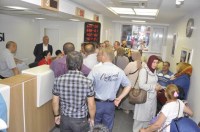 seçim kampanyası masrafları için açılan hesaba para yatırmak için banka önünde