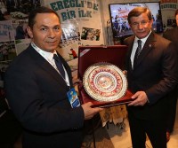Başkan Uysal'la görüşen Başbakan Davutoğlu, Ereğli halkına selam ve sevgilerini iletti.Belediye Başkanı Hüseyin Uysal, ziyaretin anısına Başbakan Davutoğlu'na Ereğli'ye özgü çeşitli hediyeler takdim etti.