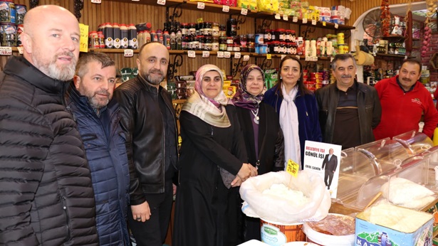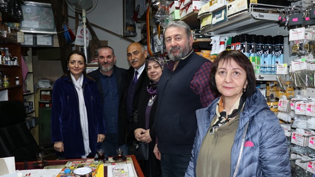 birlikte Ereğli şehir merkezinde esnafları ziyaret eden Saadet Oruç, Şahin'e
