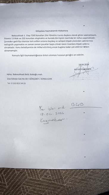 "Burada dilekçemizi tüm yetkili makamlara ilettik. Köpekler çocuklarımıza saldırdı, saldırmaya da devam ediyor. Amacımız köpekleri uyutmak değil, sadece onları buradan düzgün bir şekilde alıp barınakta beslemek. 1 yılda 7-8 kez sitenin farklı sakinlerinin ısırma vakalarıyla karşılaştık. Hayvan severler önce insanı sevmeli. Burada küçük çocuklarımız korkudan markete gelemiyor. Bazen dükkânlarımızı ve çalışmamızı bırakıp evimize alışverişe gelen çocukları evlerine götürüyoruz. Çocuklar oyun alanlarını rahat kullanamıyor. Yetkililerden talebimiz bir an önce çözüm bulunması ve burada yaşayan site sakinlerinin daha fazla zarar görmemesidir."