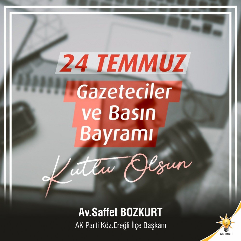 AK Parti Kdz. Ereğli İlçe Başkanı Av. Saffet Bozkurt, ‘24 Temmuz Gazeteciler ve Basın Bayramı’nı yayınladığı bir mesaj ile kutladı.
