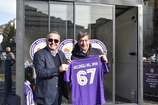 Takımın yürümesi yazım. Yürümesi için bütün Ereğli halkından destek bekliyoruz. İnanılmaz olaylar oluyor. Zaman zaman bizi duygulandırıyor. Çocuklar kadınlar ev ev dolaşıp forma satmaya çalışıyorlar. Şimdi Organize sanayi bölgesinden sanayicilerden iş adamlarından destek bekliyoruz. Bu takıma destek vermenizi ve bu birlikteliğimizin devam etmesi en büyük heyecanla beklediğimiz bir olay. İnşallah çok iyi neticeler alacağız. Teknik heyetimize yürekten inanıyoruz futbolcularımıza inanıyoruz. El birliğiyle bu işi götüreceğiz. Hepiniz birer pırlantasınız. Sizleri daha iyi yerlerde görmek en büyük arzumuz. Ereğli halkı sizlerden ne bekliyor; bunu çok iyi biliyorsunuz. Allah yolunuzu açık etsin. Bahtınızı açık etsin. Allah ailenize çoluk çocuğunuzla beraber hayat size hep gülsün hep mutlu olun inşallah.