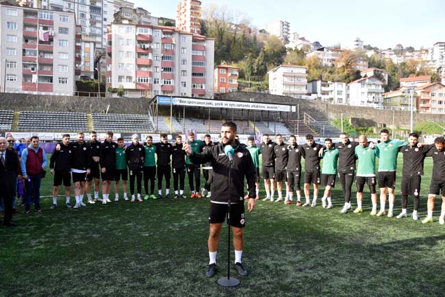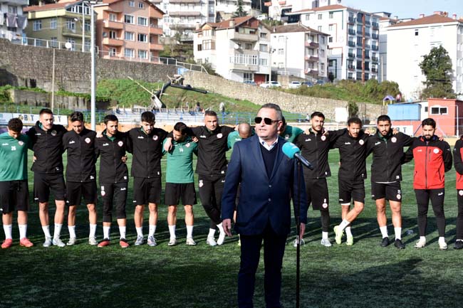 Çünkü: bütün Ereğli halkı birleşmiş vaziyette. Ereğli’de resmi konular falan konuşulmuyor. Ereğli Belediyesinden falan bahsedilmiyor, kaymakamlıktan bahsedilmiyor. Ereğli Belediyespor konuşuluyor her yerde. En küçüğünden en büyüğüne kadar. Bu ortamı getiren tabiki teknik heyetimiz ve siz değerli futbolcularımız. Özellikle yönetim kurulumuz. Akın katı ve ekibi büyük fedakarlıklar yaparak. Bu isler kolay olmuyor. Her fedakârlığı yapmaya devam edeceğiz. Bu birlik ve beraberliği götürmek zorundayız. Arkadaşlar; futbolcu konusunda sizler kadar bilgili değilim ama hepiniz bir yıldız gibi parlıyorsunuz. Takım olarak da marka olmaya başladınız. İnanılmaz sözler duyuyoruz. Bütün gözler sizde. Bu sizde ters etki de yaratıyor. Büyük bir baskı var üzerinizde. Bu seriyi kurtarmak için. Ben buradan yönetim kurulu üyelerimize ayrı ayrı şükranlarımı sunuyorum. Futbolcular, teknik heyet ve taraftarlarımıza ve yerel basınımıza yarı ayrı şükranlarımızı sunuyoruz.