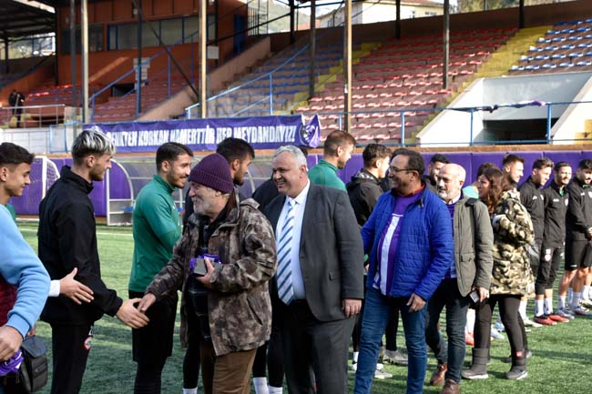 Çok değerli futbolcularımıza söyleyecek bir laf bulamıyorum. Bana sorulan şu; bu kadar karakterli bir kadroyu bir araya nasıl getirdiğimizi soruyorlar. Futbolcularımızın hepsi de b.irer marka. Şuanda; Türkiye’nin gözleri burada amatör liglerde oynayan. Futbolcuların gözü yöneticilerin gözü Ereğlispor’da hem birey olarak marka olmaya başladılar. Ereğlispor ‘da takım olarak marka olmaya başladı. Bu antrenörler arasında tartışılıyor. Ne kadar teşekkür etsem azdır. Arkadaş bağlıklarını yükselten birbirine yardım eden destek veren bir takımın başkanı olmaktan büyük bir onur duyduğumu özellikle ifade etmek istiyorum. Hepsine ayrı ayrı teşekkür ediyorum. Tabi ki bu ortamı hazırlayan Teknik ekibe hocalarımıza, ayrıca şükranlarımı sunuyorum. Onların liderliğini izliyoruz. Hepsinden Allah razı olsun. Unutmayacağımız bir şeyde taraftarlarımız. Herkesin takdirini kazanıyor. Buraya gelen yöneticilerin hepsi de şaşkın vaziyette. Tribünler yetmediği için belediye kendi imkanlarıyla tribün yapmaya çalışıyor.
