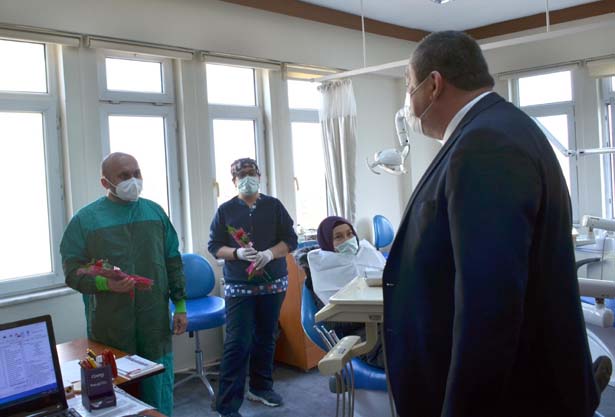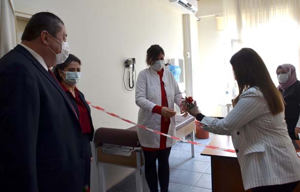 Tekin ve beraberindekiler daha sonra hastaneyi dolaşarak doktor, hemşire, hasta bakıcı ve hastalarla sohbet edip, karanfil dağıttı.